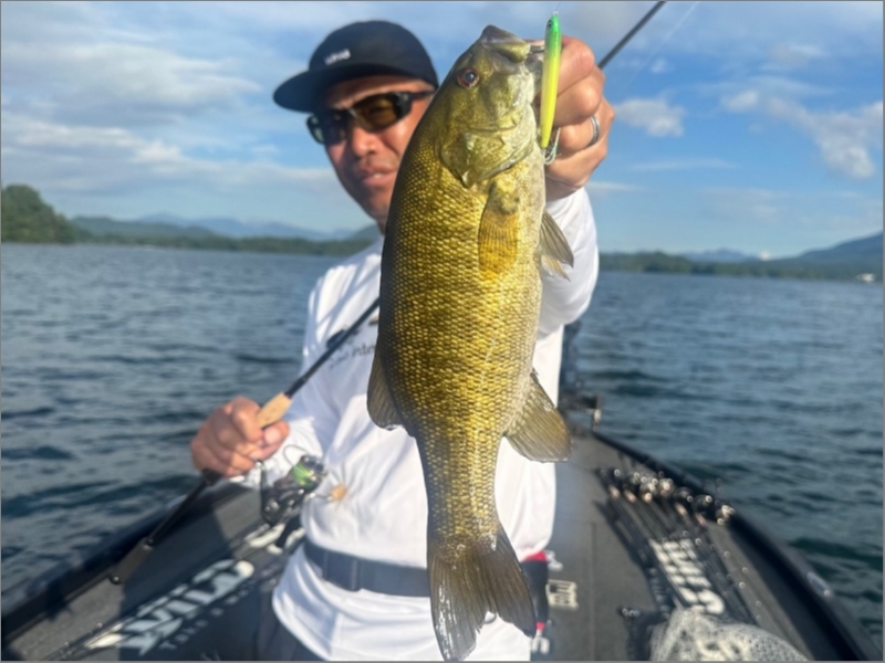 表層シーズンは例年だと春と秋。しかし今年は夏場の多雨により、水温が上がりきらず水位も高かった為、ワカサギの当歳魚がいつまでもシャローに残った事で、夏でも表層系が異様に効いた年となりました。