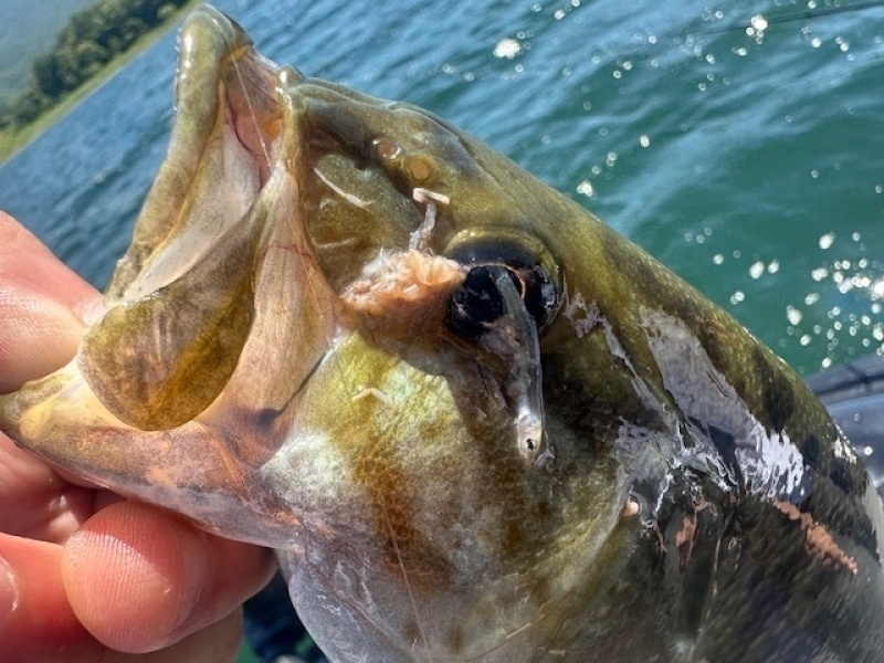 フラットの魚はボトム周辺でもよく食いましたが、ハンプ周辺の魚は浮き気味で、1m以上のリーダーのダウンショットと浮きキャロがよく食いました。