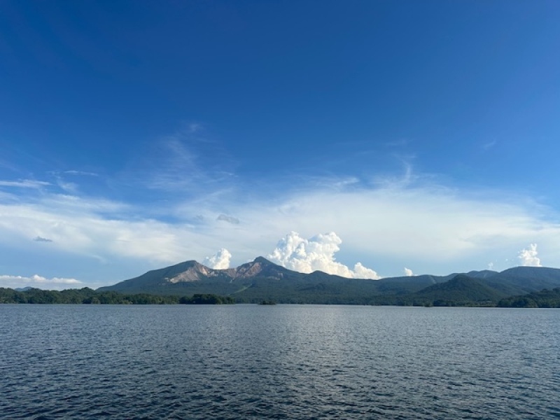 今日も夏空の桧原湖。雨が降らない日が続いていますが、更に何日続くのでしょう…(^_^;)