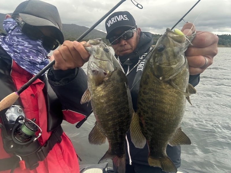 寒い中でも太く黒い魚体が水面のルアーを襲ったりクランクに強いバイトが出たり。