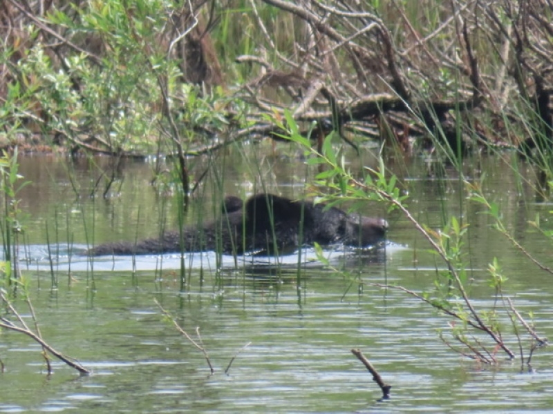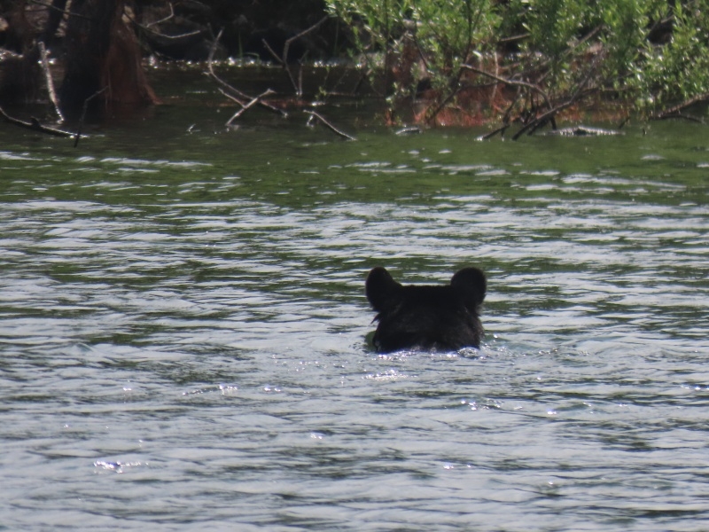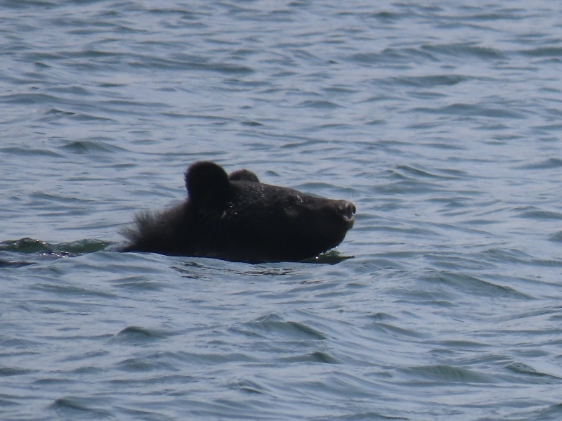 ↑そして昨日7月7日は、いつもの横断ルートで桧原湖横断中のクマさんに遭遇。分かりますかね(^.^)