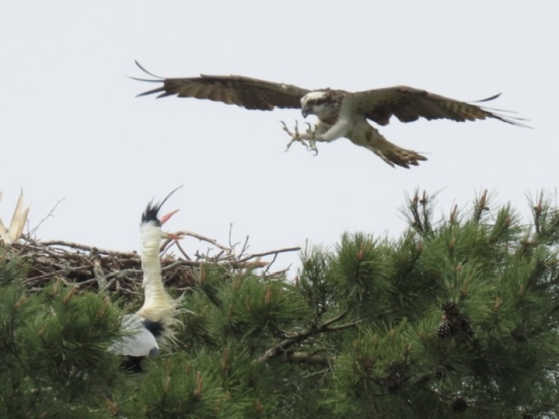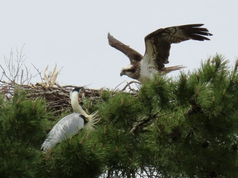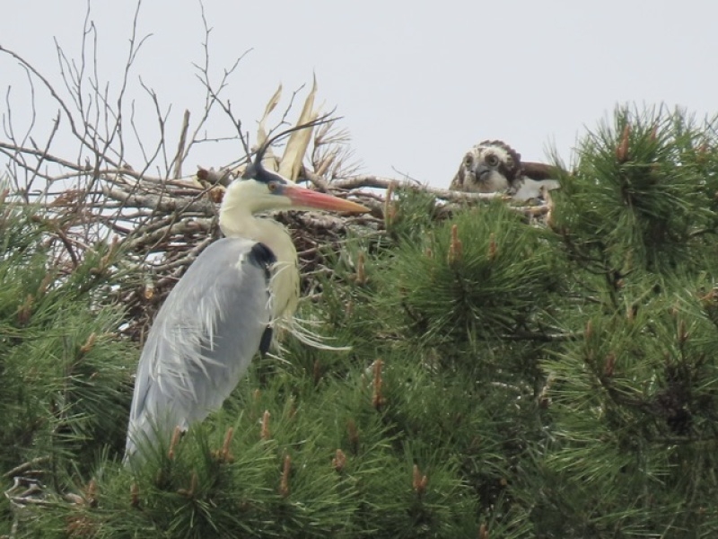 なんと、アオサギが持ち前の図々しさを発揮して、ミサゴの巣のすぐ隣に営巣してしまいました。