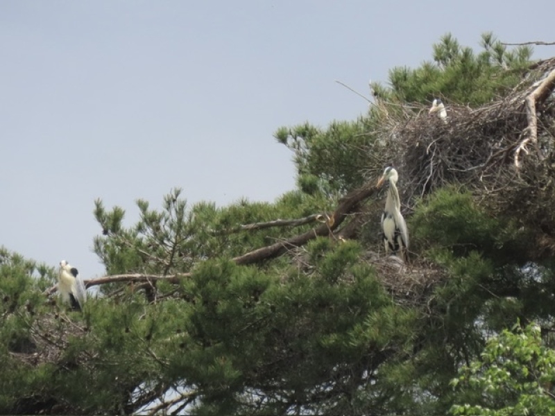 毎年、200mの距離で隣合う島でミサゴが営巣、アオサギが集団営巣していたのですが、今年はミサゴの島までアオサギが侵略。