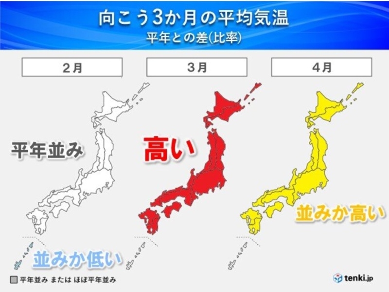 2月3月の予報は変わらず。1月は…結果的に「並みか高い」でしたね。