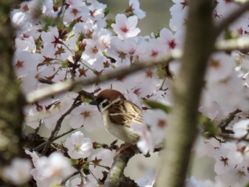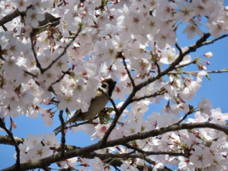 クチバシが短く蜜に届かないから、桜の花を丸ごとブチっと切り取っていただくのだそうな…。