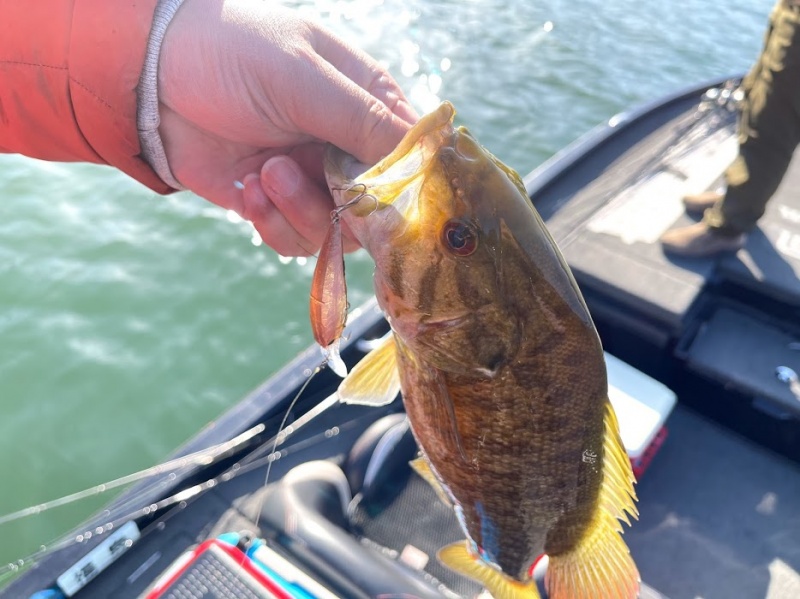 でも、シャッドへのバイト直後に水面でボイルを始めたり、エリアパワーを感じる事は出来ました。