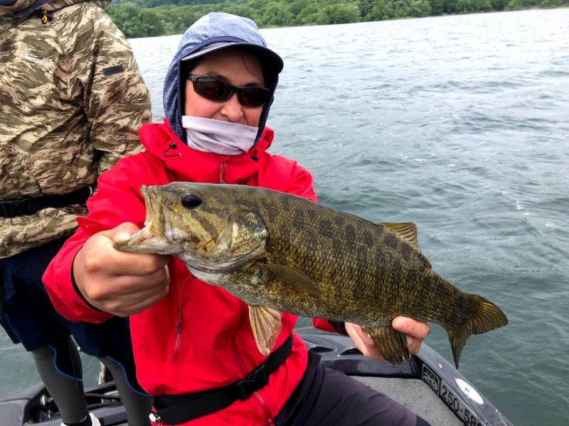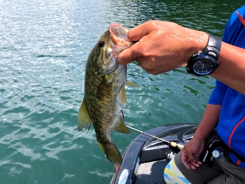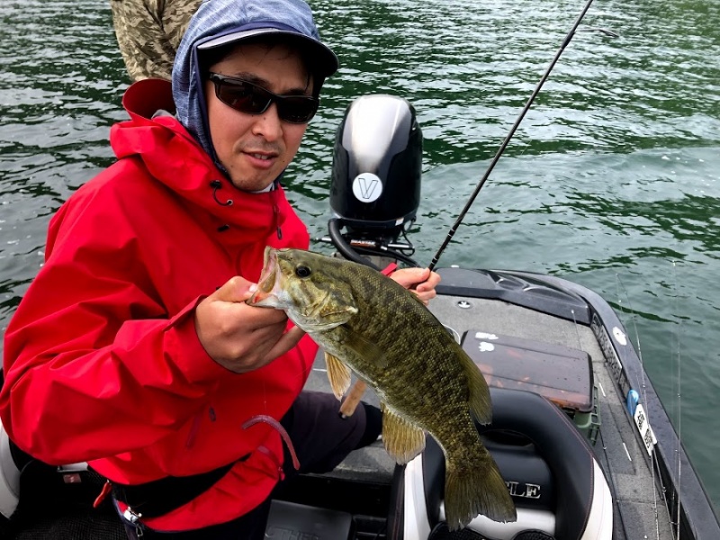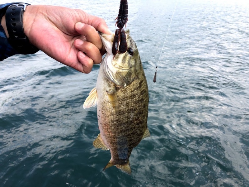 (↑スモールマウスを釣っていると、常にワームの一部をボトムに付けると食うというのは桧原湖でも野尻湖でも小野川湖でも猪苗代湖でもどこでも起こる現象なので手駒にあった方が絶対に良いです)