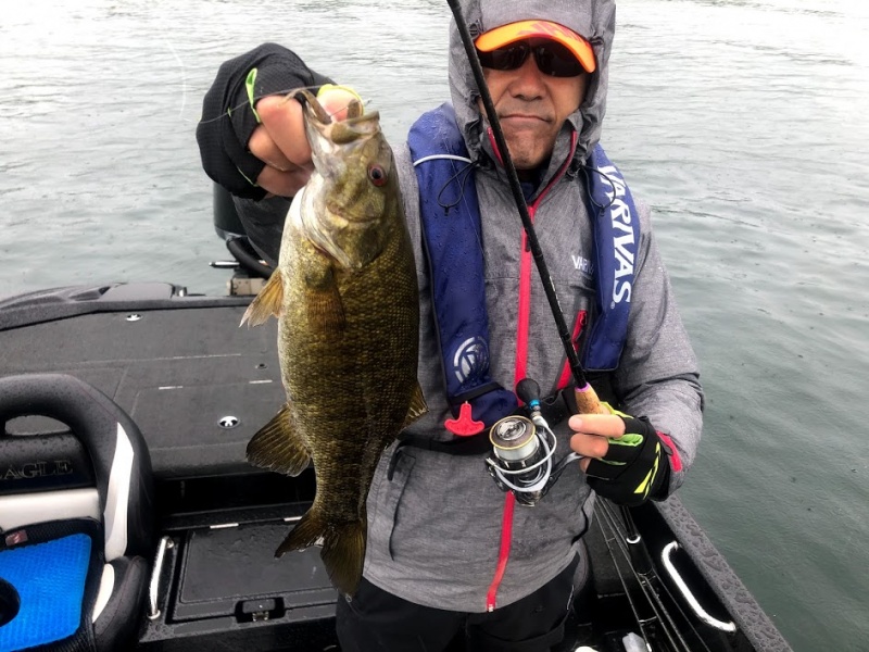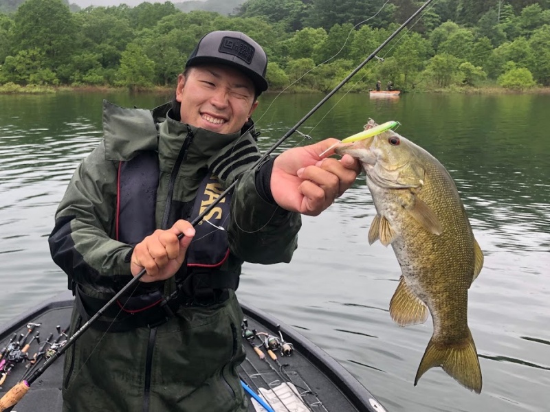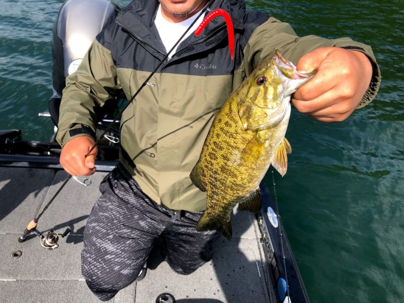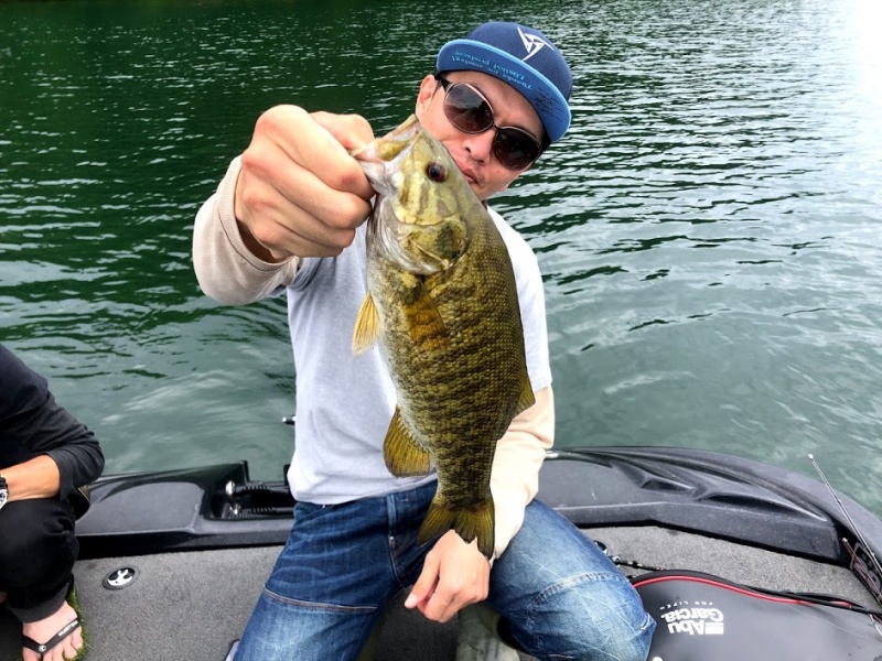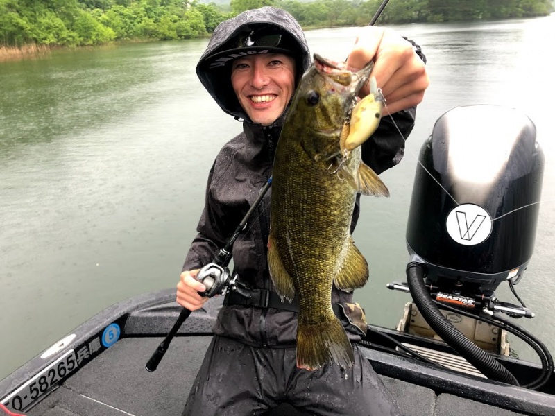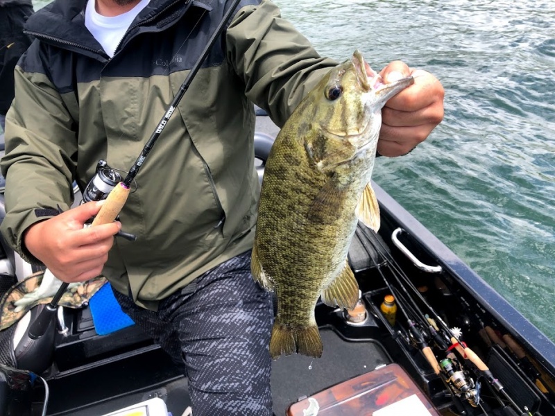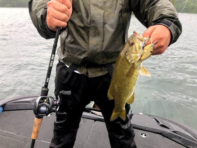 スモールマウスバスがクランクベイト、スピナーベイトといった巻き物、ハードベイトでもガンガン食ってくれる状況もあるのが桧原湖の良い所(^^)