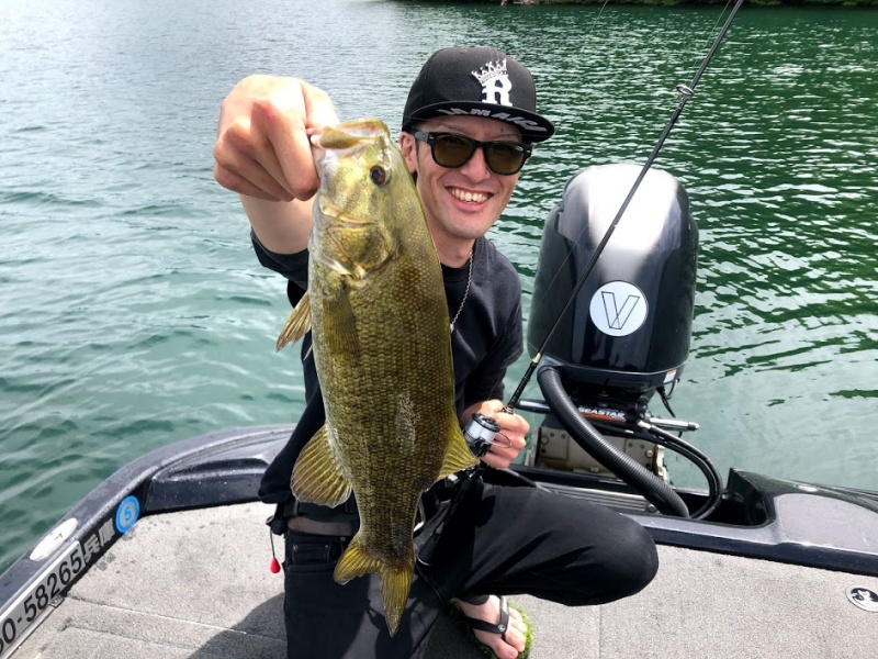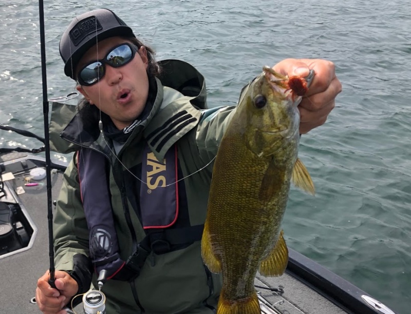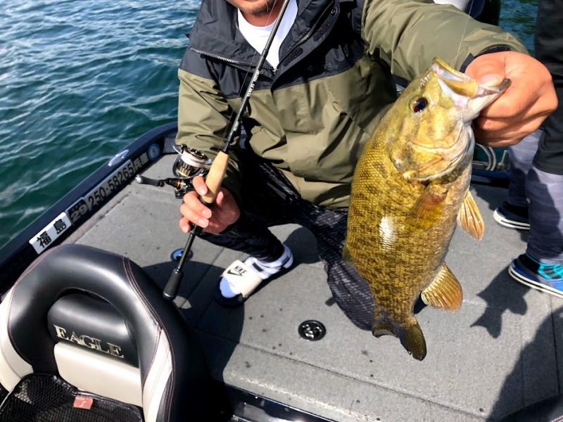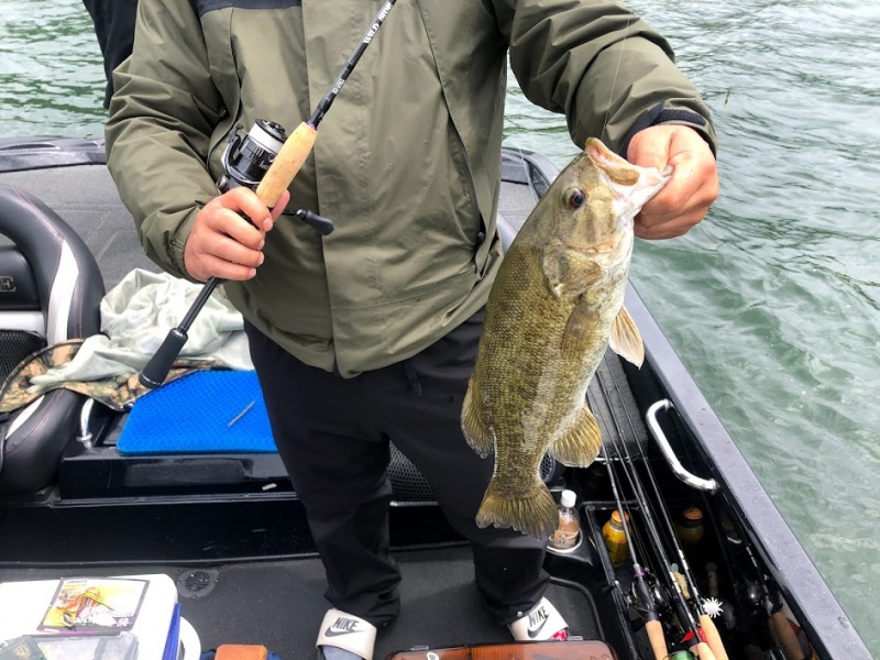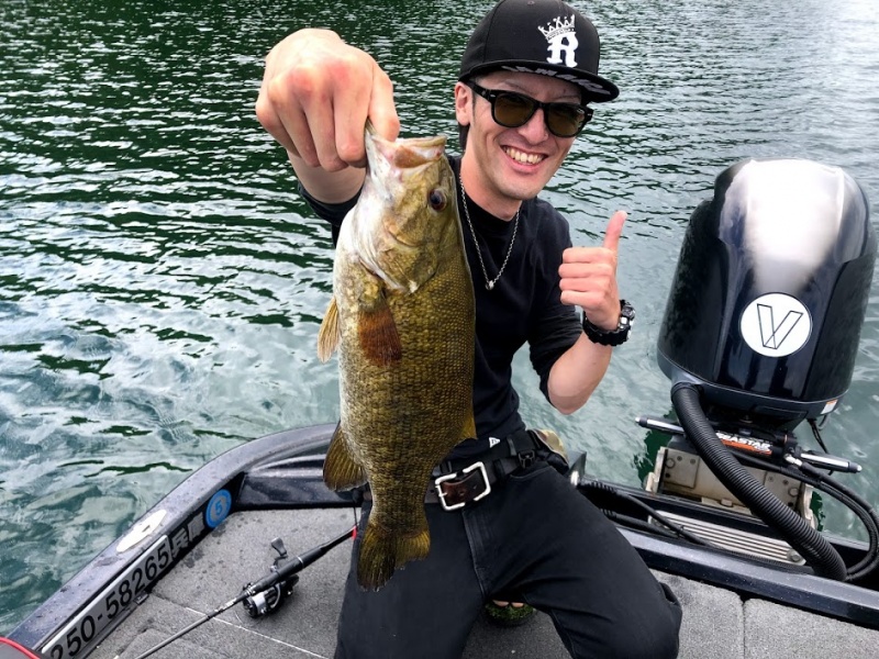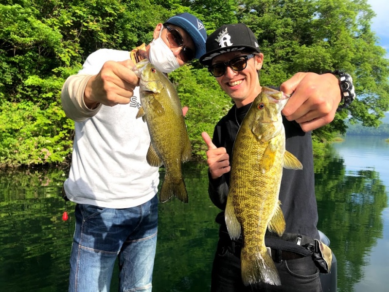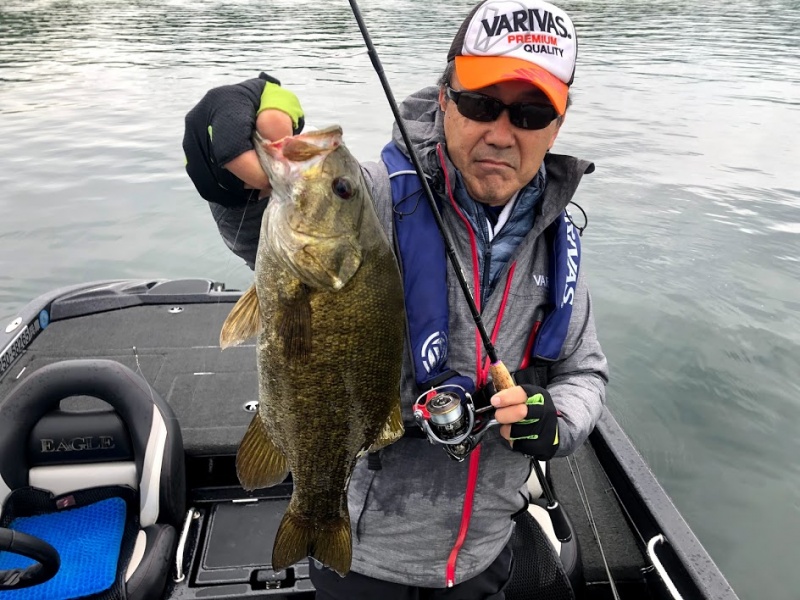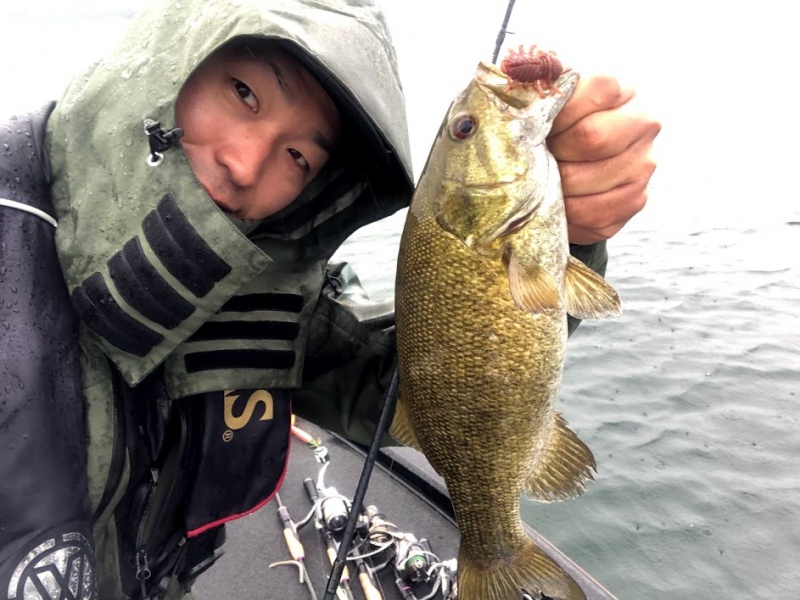 スモールマウスバスがクランクベイト、スピナーベイトといった巻き物、ハードベイトでもガンガン食ってくれる状況もあるのが桧原湖の良い所(^^)