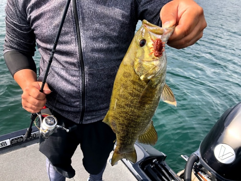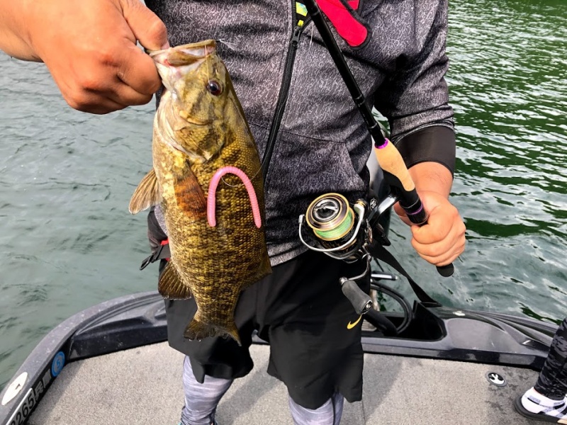 いまの所、昨年に続きエビの捕食率が高いので、今年も「デカい、重い、速い」の三拍子が揃わない物の方が釣れるのかなといった感じですね。(ワーム系の場合)