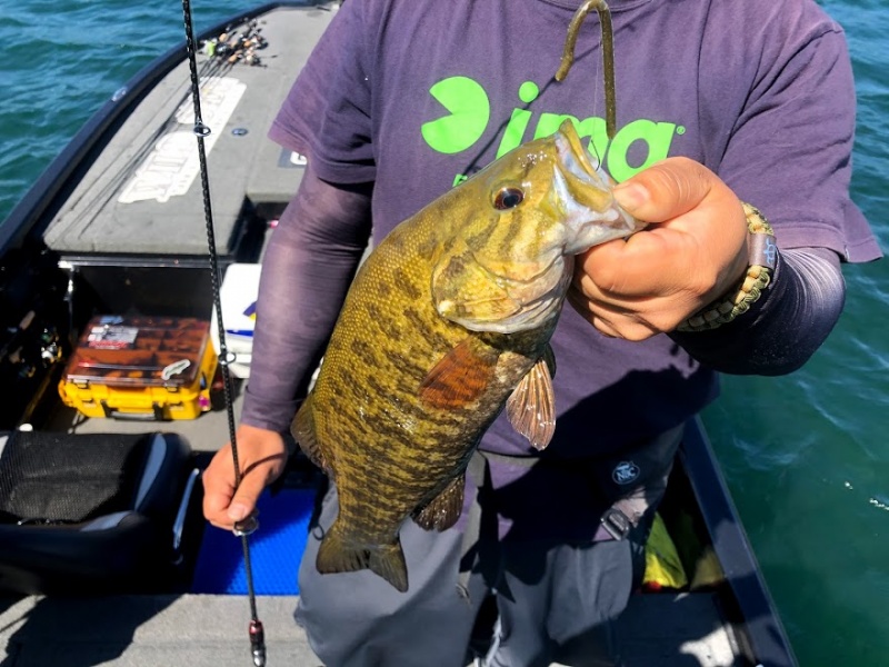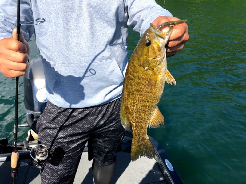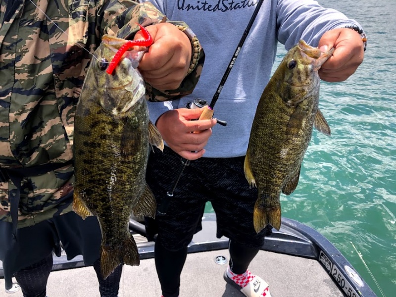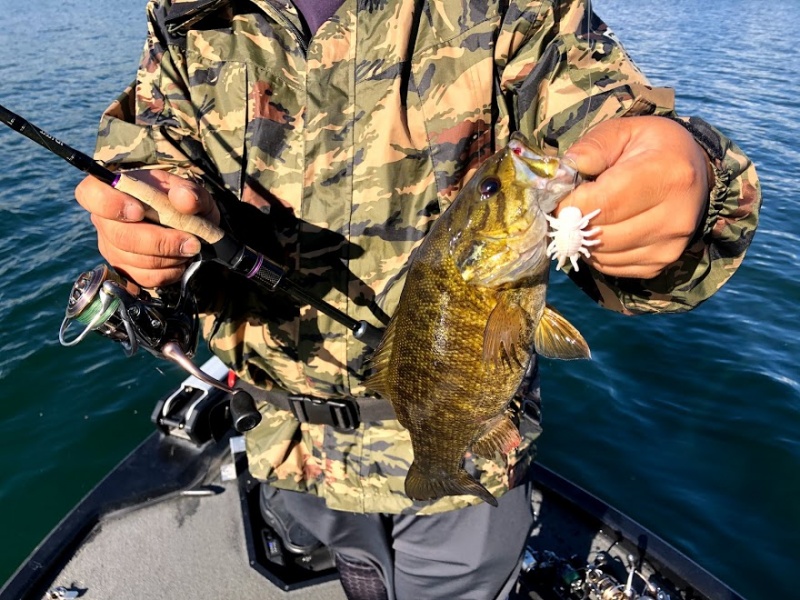 1時間みっちり虫のチョウチンに挑戦して頂いて、その後はライトリグで魚を触る展開。