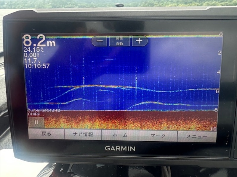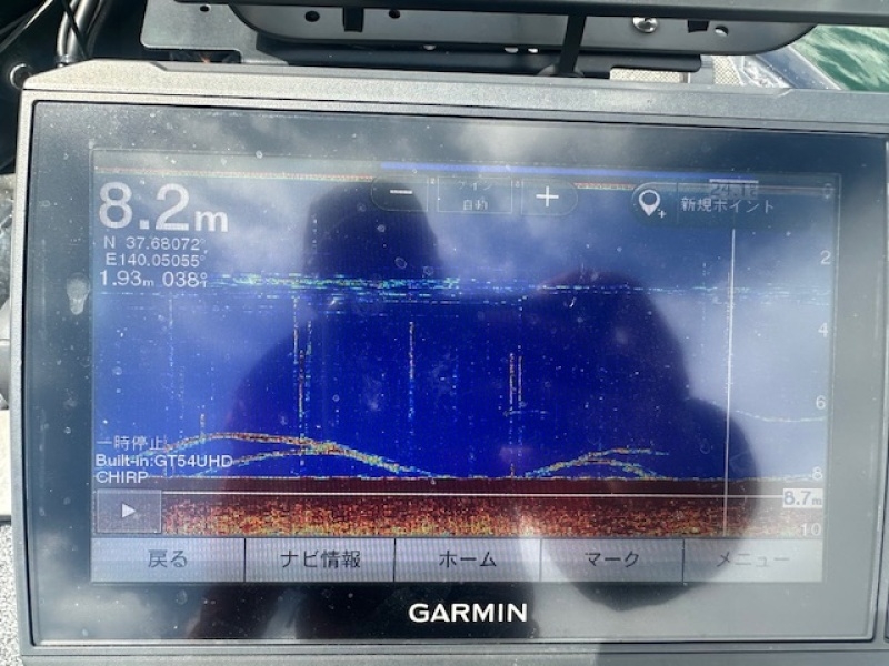 一見浮かせ気味のアプローチが釣れそうな魚探映像。