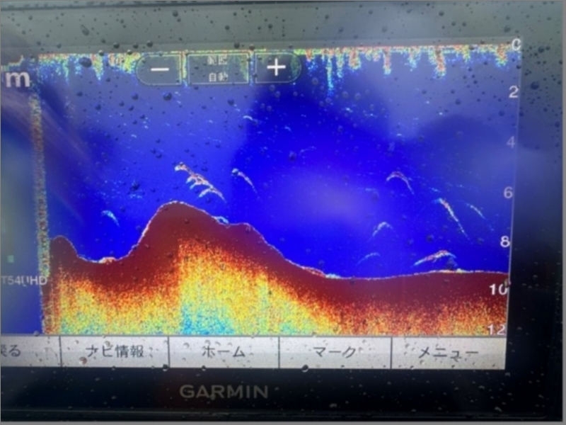 ほぼ1日中ローライトだったので基本的に水面ゲームで押して行きましたが、深い所に大規模な魚群を見つけたら沈めて。