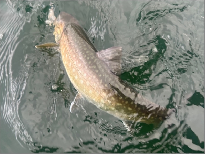 エリアや水深、地形、エサやバスとの距離感などなど、いろいろ探し回ってトラウト達を見つけて、ゴン太のイワナのチェイス多数。フッキング決まってファイトまでいきましたが、キャッチはならず。