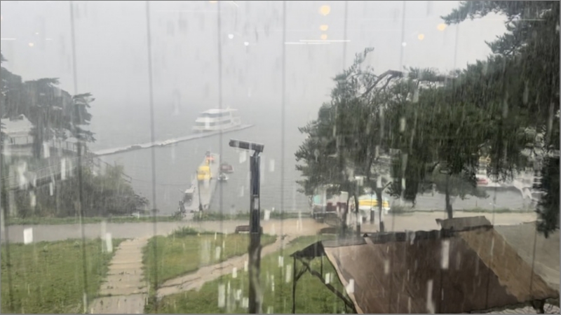 午前中ずっと雨。昼大雨。午後曇り。夕方雨。