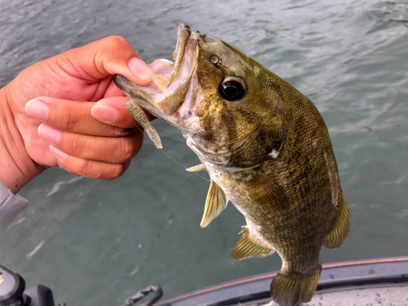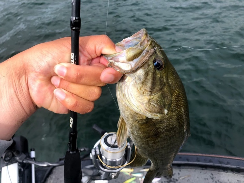 ボトム付近を横方向に泳がせ続けるダウンショットで良いサイズ拾えました。