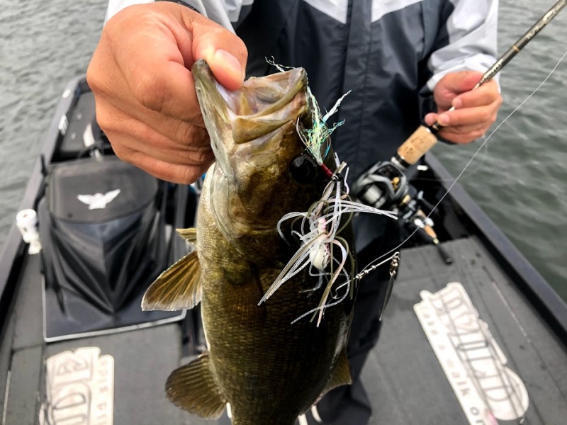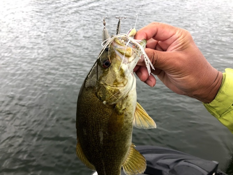 ディープが賑わっている代わりにシャローが空いていて、風と濁りもあったのでシャローのスピナーベイトゲームをメインに選択。