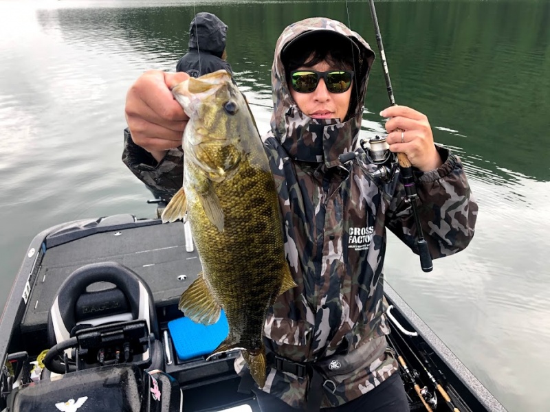 スポットに対してプレッシャーが掛かりきる前にダウンショットで釣っちゃうなつみさんの勝利です笑