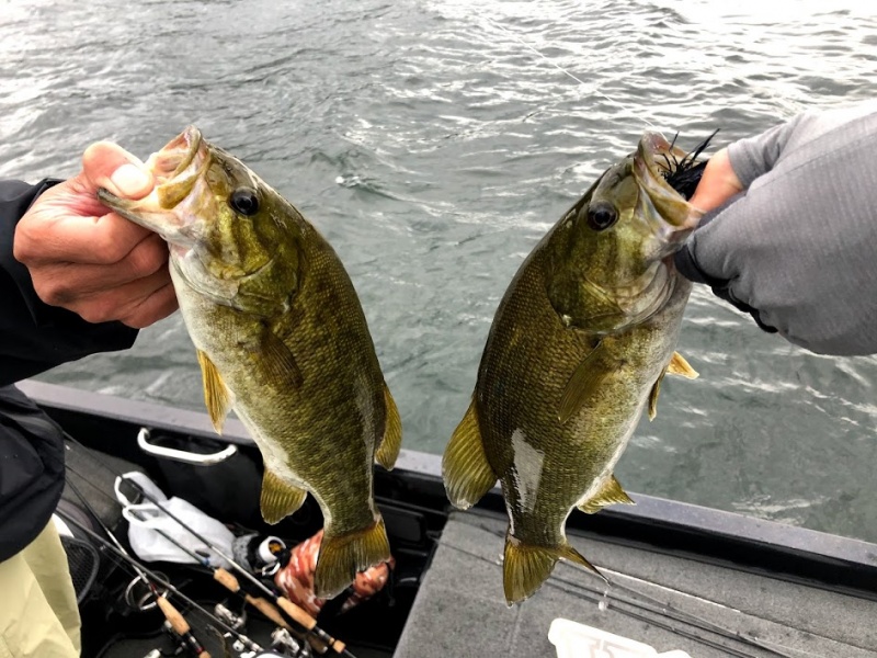 パワー系フットボールジグ。集中して繊細に食わせるダウンショット、どちらも面白い桧原湖のディープフィッシングです(^^)