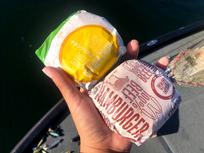 その後はスピナーベイトの他、ドライブシャッドへのバイトやラージのバラシもあったりで早めにお昼へ。