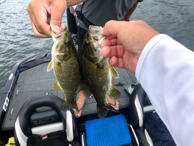 人生初バスはナイスサイズ!開始2投でのキャッチにとおるさん引いてました笑
