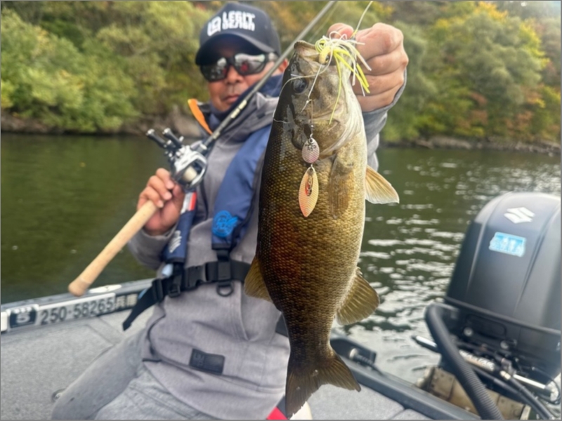 スピナーベイトは普段から特大サイズが釣れ易いルアーではありませんが、水温低下など魚の思考力が落ちるタイミングで的確に投じれば特大キラーに変貌して特大サイズを連れて来てくれます(^^)