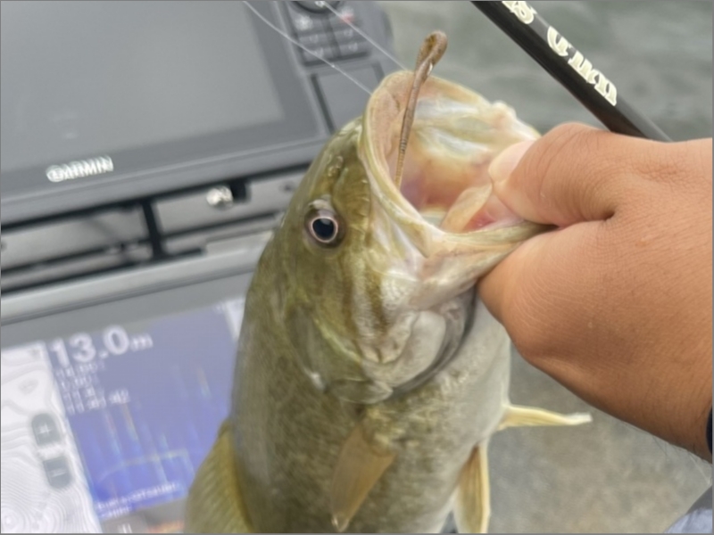 風が強かったのでマイクロネコは無し。ややシンカー重めのダウンショット、ライトキャロ、ロングワームで(^.^)