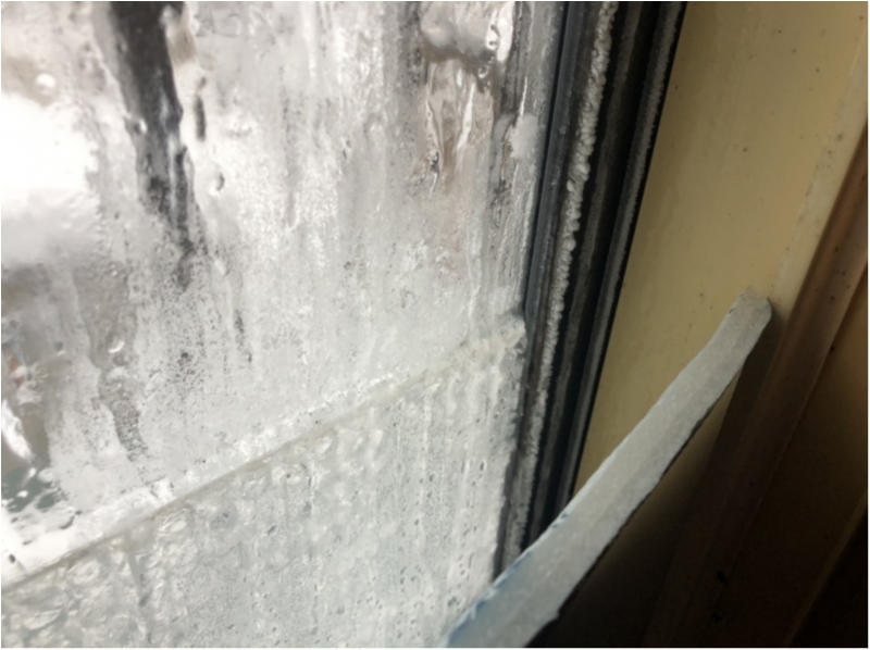 今日はだいぶ寒くて窓の内側も凍りました。