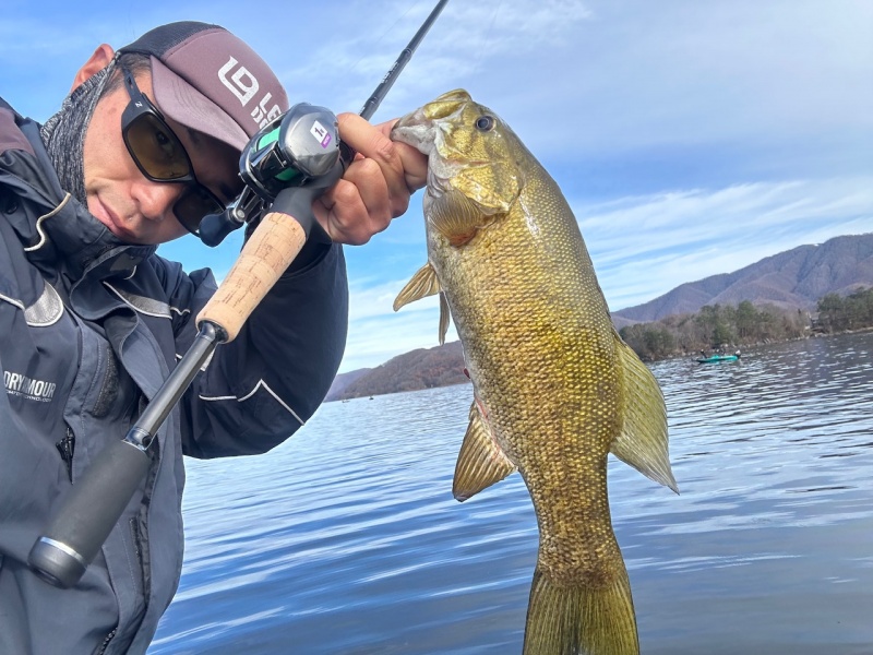 今年の晩秋〜初冬は湖の中でもエリアによって濁り具合がだいぶ違っていて、しっかり濁っていたり、濁るまでいかなくとも水に色が付いている程度の所でもメタルバイブが活躍する場面が多かったですね!