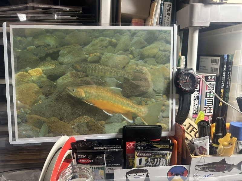 こちらの写真は、ウチのデスクで常時見れるようにしてある目の保養。頂き物の素敵なミヤベイワナの写真です。